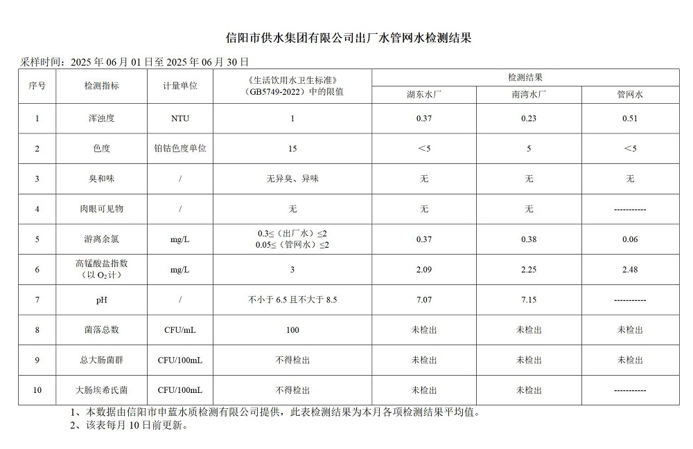 6月-出廠水、管網(wǎng)水檢測
