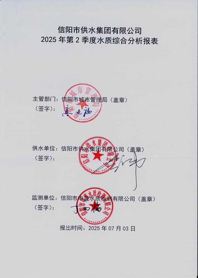 2025年第二季度水質(zhì)綜合分析報表