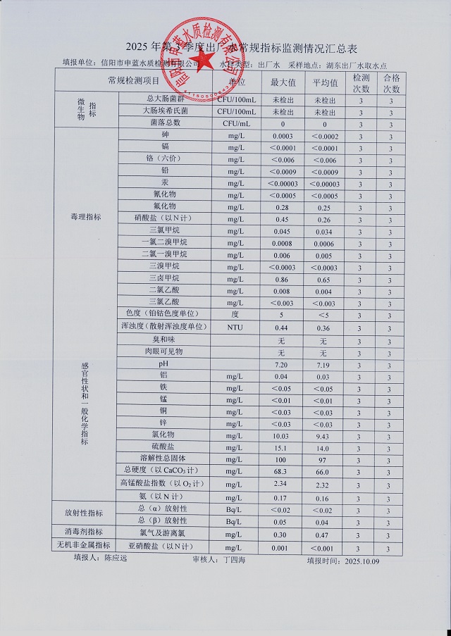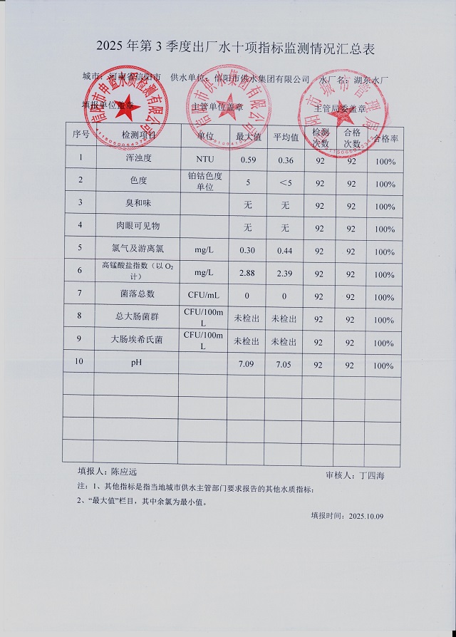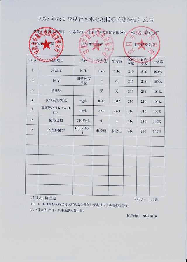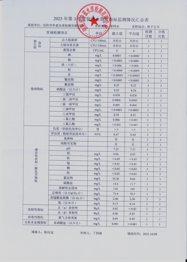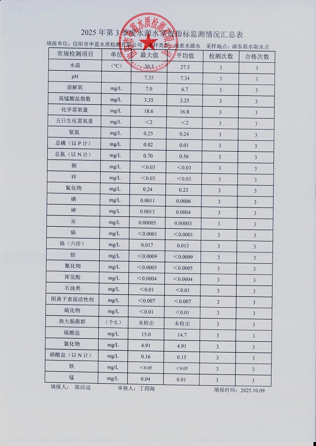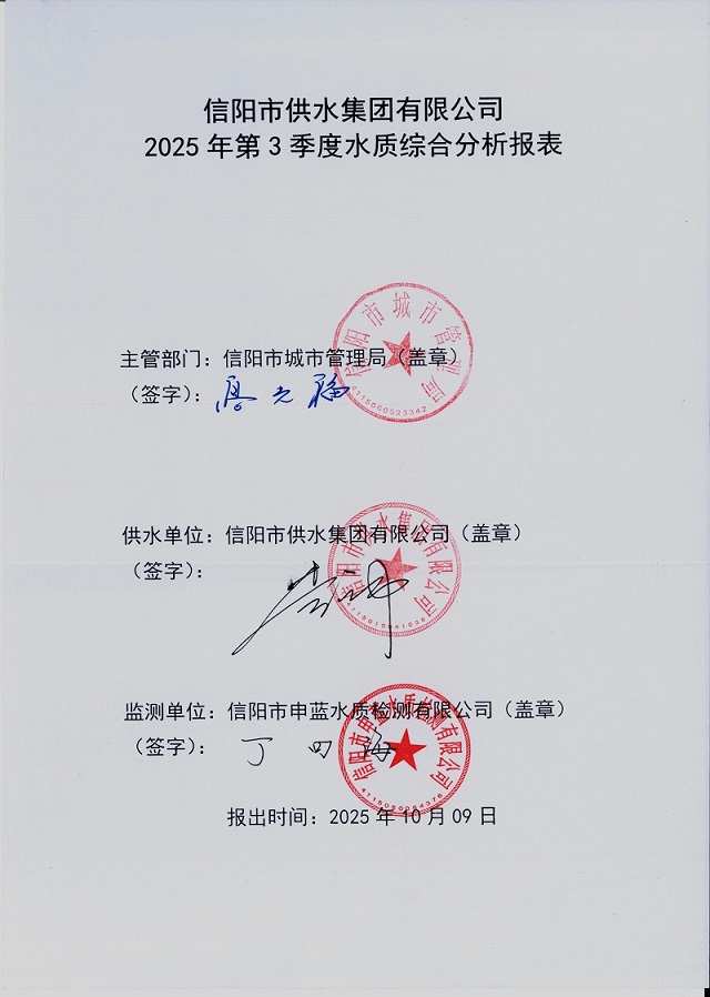 2025年第三季度水質(zhì)綜合分析報表