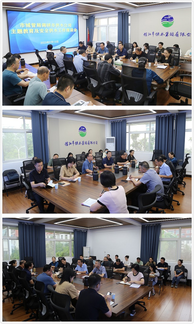 重點工作一:市城管局調(diào)研指導供水公司主題教育及安全供水工作。9月13日,市城市管理局局長程功言一行到市供水公司開展主題教育及安全供水工作座談會。程功言同志傳達了中央、省、市主題教育會議精神,強調(diào)黨員干部要緊緊圍繞學思想、強黨性、重實踐、建新功總要求,牢牢把握深入學習貫徹習近平新時代中國特色社會主義思想這一主題主線和根本任務,牢記為人民服務的宗旨,從開展主題教育中發(fā)現(xiàn)自身的優(yōu)勢和短板,聚焦主責主業(yè),推動創(chuàng)新改革,在供水重點項目建設、“一戶一表”改造工程、優(yōu)化用水營商環(huán)境等工作中展現(xiàn)擔當作為。公司黨委要通過開展主題教育凝心聚力、建強陣地、帶好隊伍,找到攻克技術瓶頸、化解發(fā)展難題、深化改革創(chuàng)新的“方法論”,為企業(yè)高質(zhì)量發(fā)展儲蓄源源不斷的強勁動力。