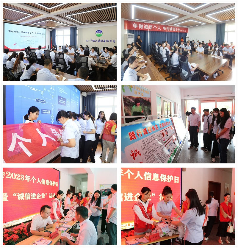 重點工作四:精神文明創(chuàng)建工作。聯(lián)合開展2023年個人信息保護日主題宣傳暨“誠信進企業(yè)”活動。9月14日上午,市總工會在公司三樓會議室開展2023年個人信息保護日主題宣傳暨“誠信進企業(yè)”活動。特邀律師講解了誠信原則在個人生活和企業(yè)經(jīng)營中的常見體現(xiàn)形式,分享了企業(yè)如何規(guī)范經(jīng)營行為、依法保護企業(yè)職工合法權益及對女職工特殊權益保護的相關要求。授課結束后,大家紛紛在“爭做誠信個人 爭創(chuàng)誠信企業(yè)”條幅上簽名承諾,表示要以誠立人、以誠待人,以人人誠信,打造“供水”誠信。