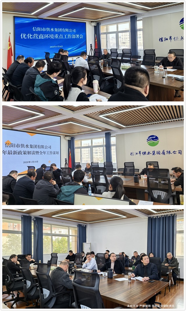 近日,信陽市供水集團有限公司召開優(yōu)化營商環(huán)境重點工作部署會,會議全面總結2025年優(yōu)化營商環(huán)境工作成效,深入分析新形勢下工作堵點難點,系統(tǒng)部署后續(xù)重點任務。公司黨委書記、相關部門分管領導及部門負責人參會,會議凝聚共識推動供水服務營商環(huán)境再升級。